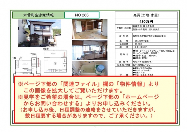 ※この物件は木曽町空き家バンク以外にも情報を掲載しています。所有者の指定する不動産会社の仲介になります。